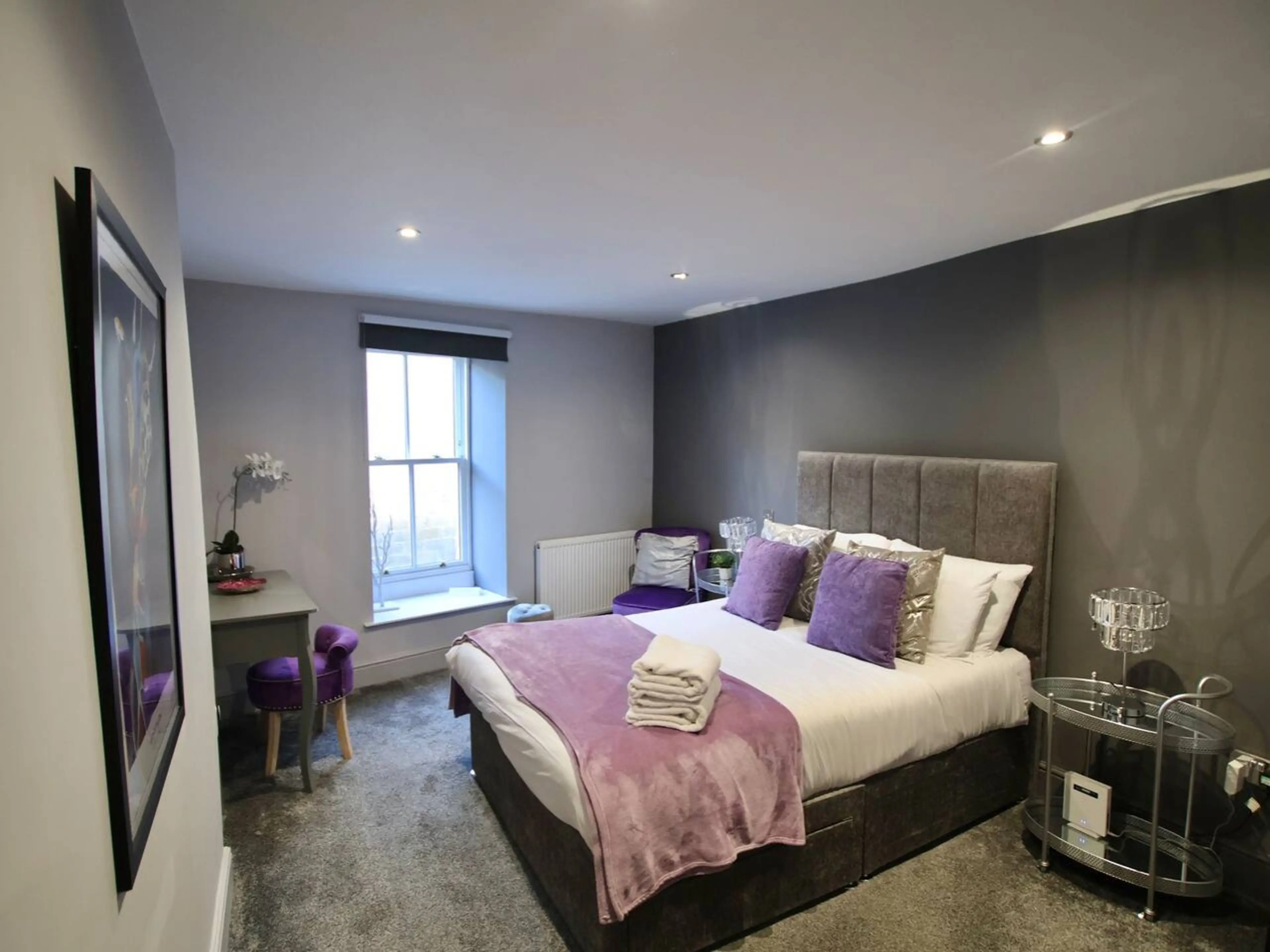 The space Majestic Purple is a stylish, design-led two-bedroom apartment set in a prime historic location, directly overlooking the ancient walls of Alnwick Castle. With vaulted ceilings, skylights, a spa-style bathroom and private outdoor space, it’s the perfect choice for a relaxing break in the ...